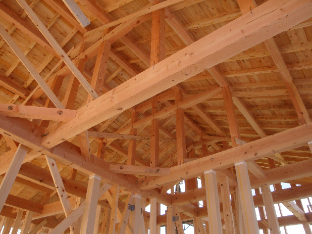 建築基準法に基づき耐力壁を配置し、それに伴い金物を取り付けます。見えなくなる部分での仕事もたくさんあります。