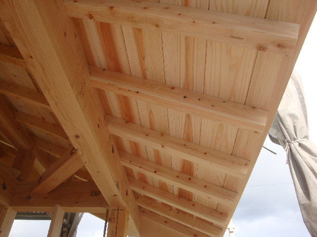 庇は木のあらわしで、クリア塗装を施して、あとは木が自然に焼けていくのを待ちます。
